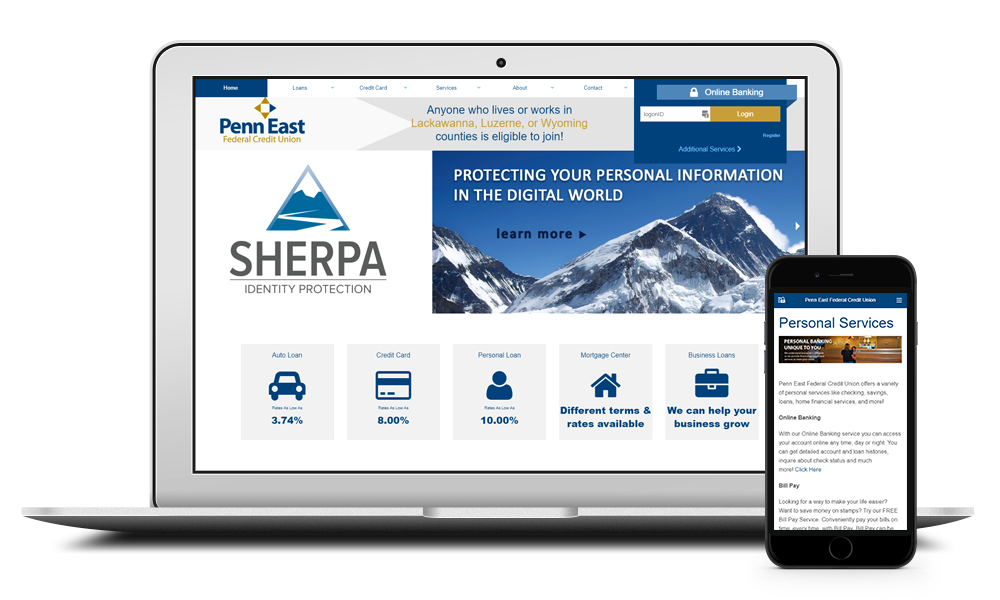Penn East Federal Credit Union needed to update their website from an outdated style and layout. My role was to help redesign and develop the new website plus help the marketing team have access to update rates, add photos and create promotions.